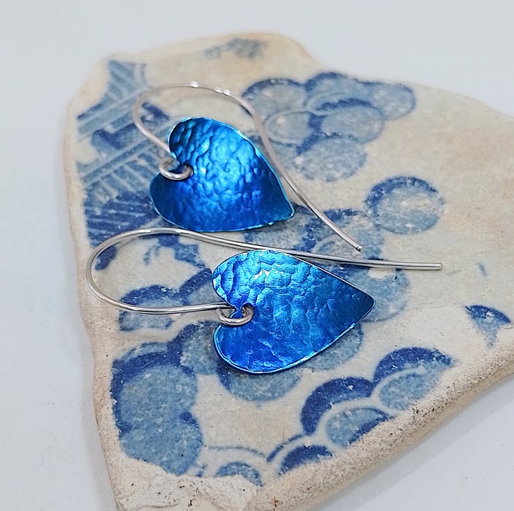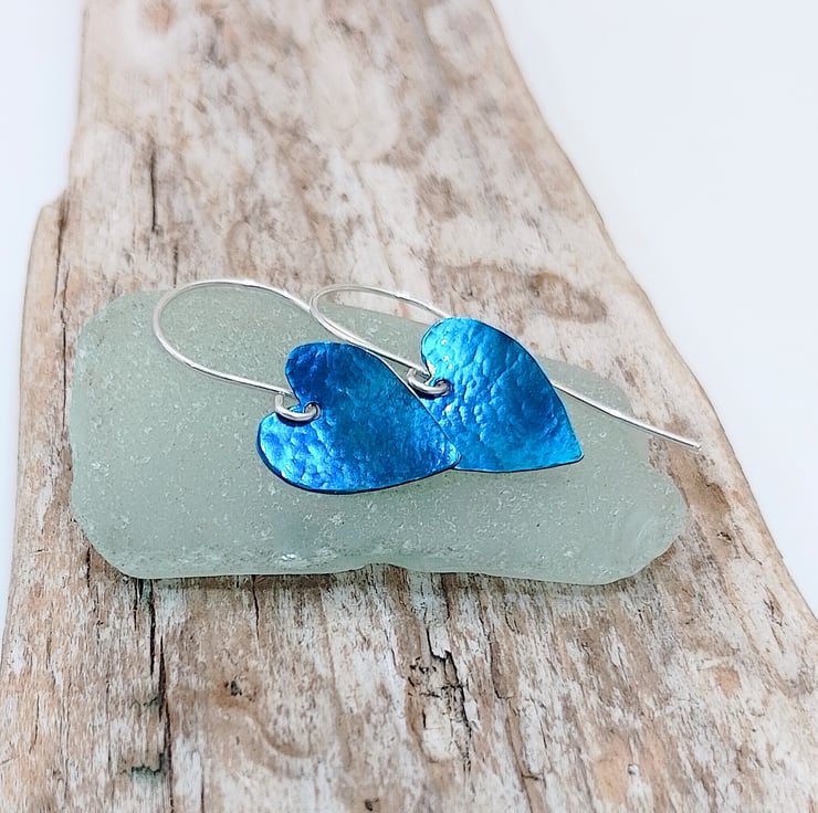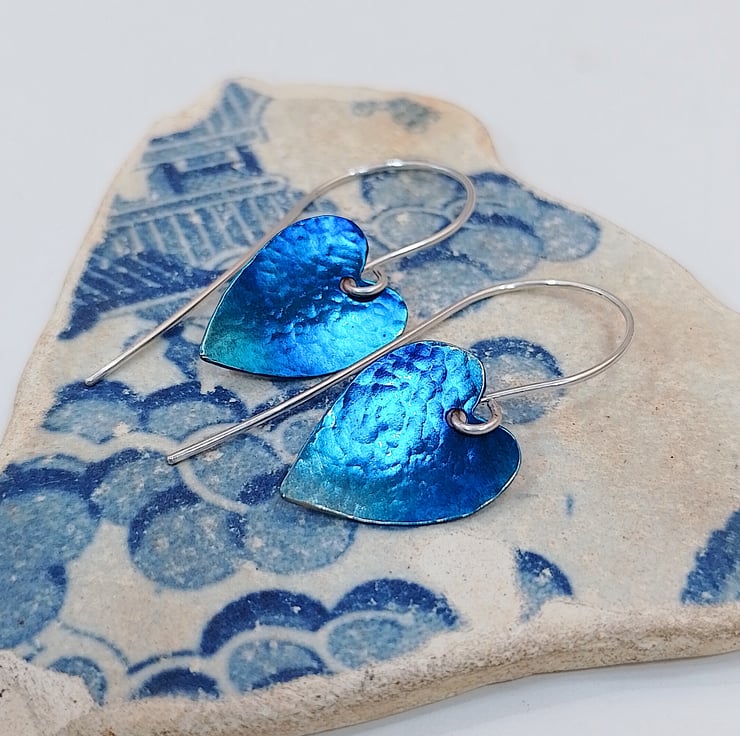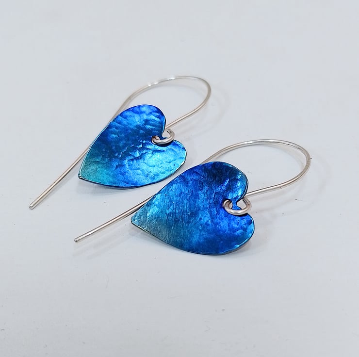 The titanium hearts measure approximately 1.8 x 1.3 cm and are hung from sterling silver earring wires I have also hand made. The sterling silver wire used has been manufactured from 100% recycled sterling silver.