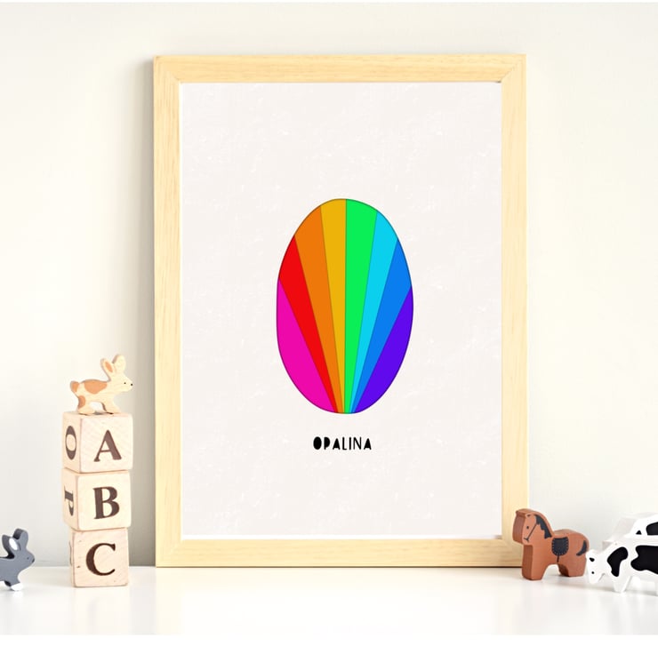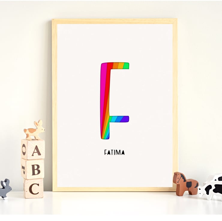 A bright and colourful personalised initial print is great to add some rainbow fun to a child's room!