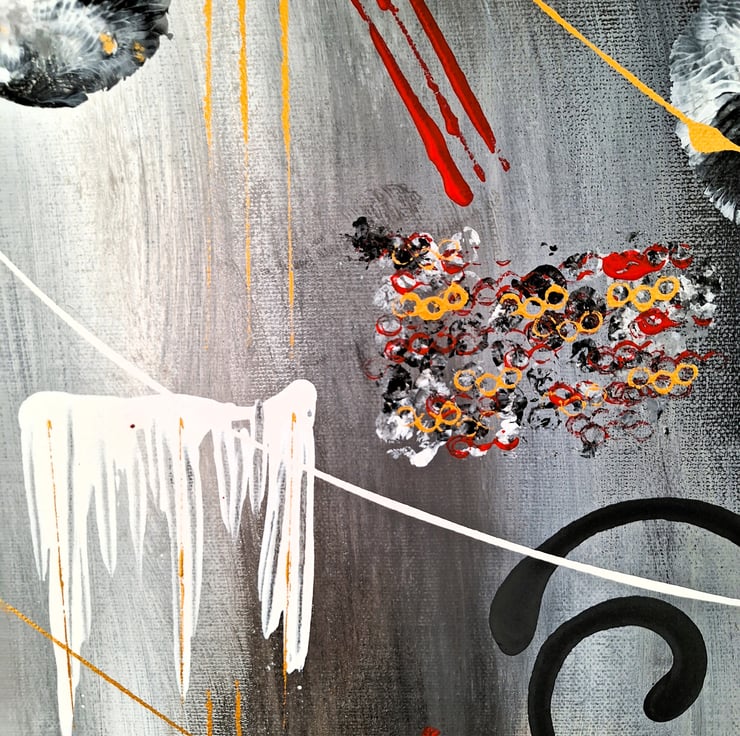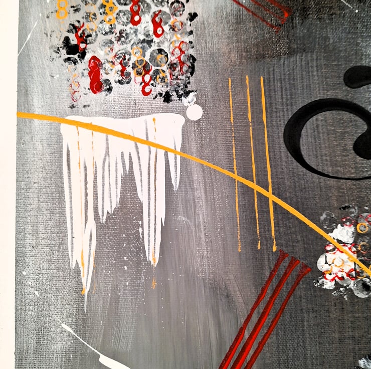 This unique painting on a large canvas is a real statement piece to hang on the wall of your home or office. It is without doubt a conversation piece.