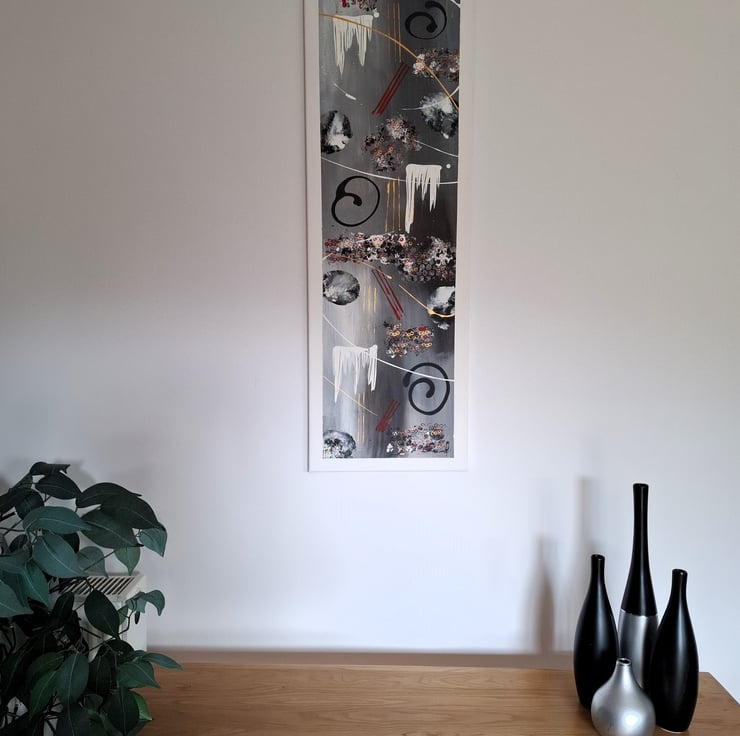 The large stretched canvas measures 100cmx30cm (40"x12") and is ready to hang with string and picture hooks included.