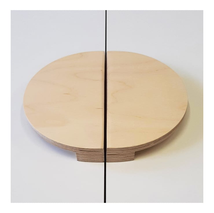 Semi-circular half moon door knobs made from 24mm Baltic birch plywood.