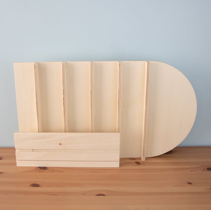 Plywood is very strong and durable, and is a much better quality wood than MDF. The elegant lines found on the edges of plywood are unique and provides a modern and stylish look. We make this stand from Poplar plywood, which is lighter than Baltic birch plywood, to make it easy to transport to markets and shows, whilst remaining strong and sturdy.