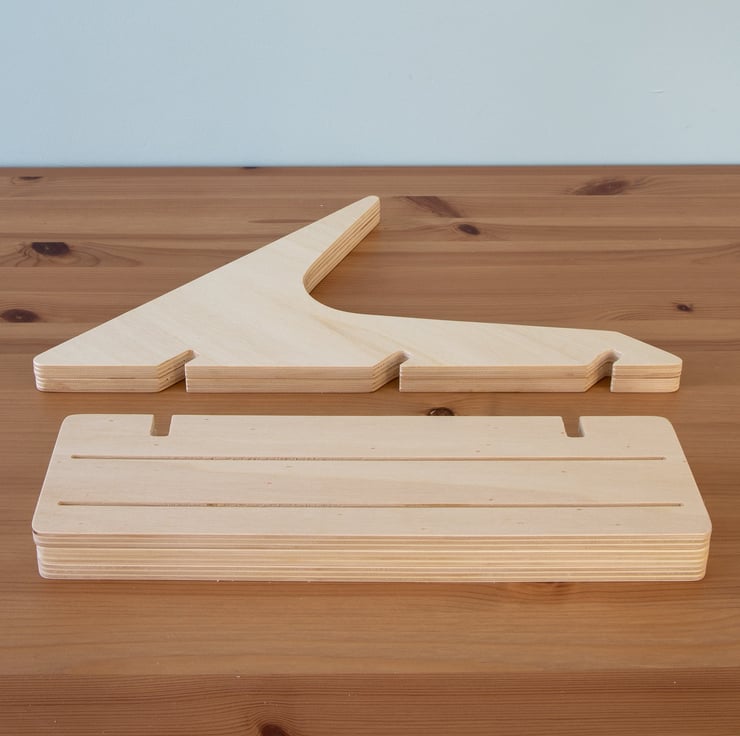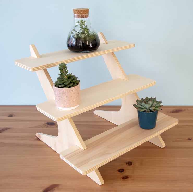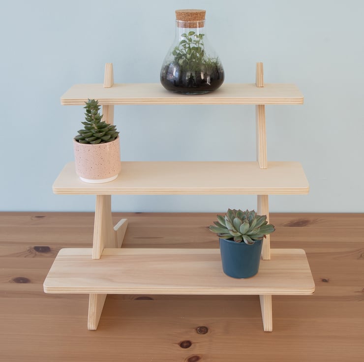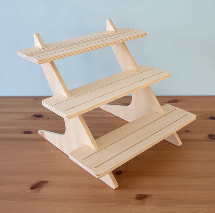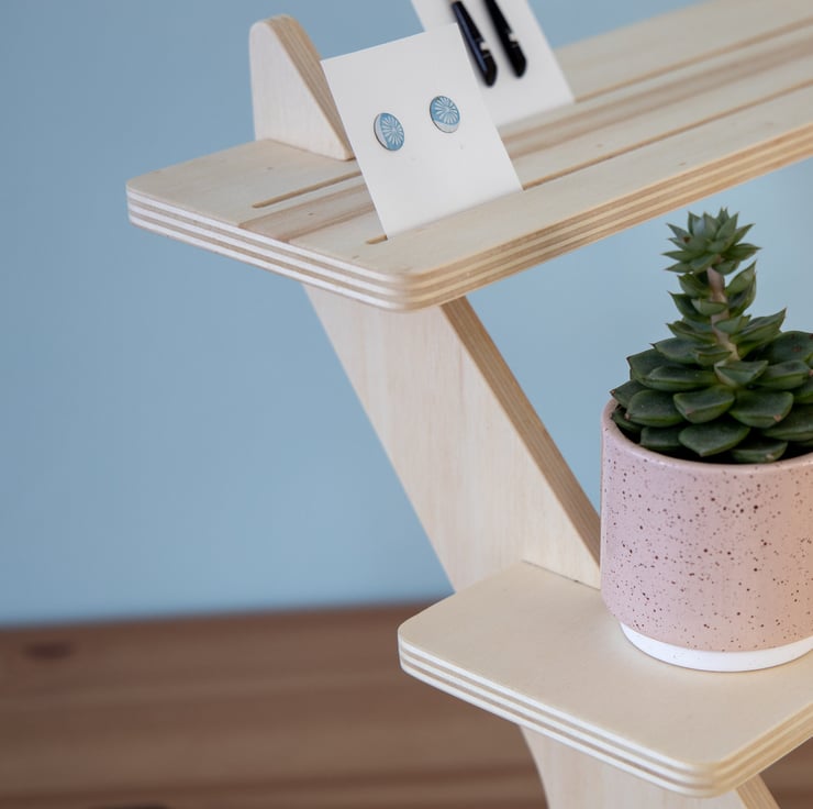 Plywood is very strong and durable, and is a much better quality wood than MDF. The elegant lines found on the edges of plywood are unique and provides a modern and stylish look. We make this stand from Poplar plywood, which is lighter than Baltic birch plywood, to make it easy to transport to markets and shows, whilst remaining strong and sturdy.