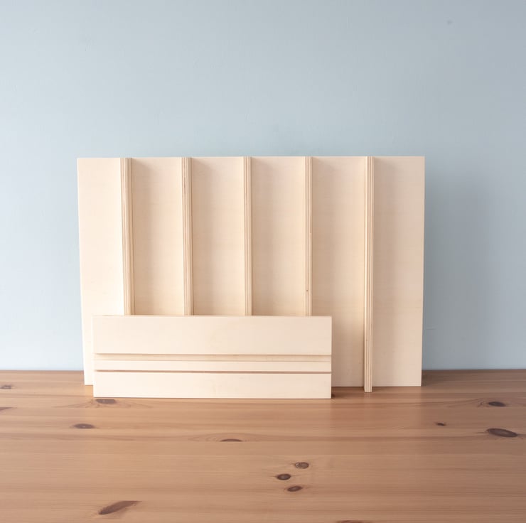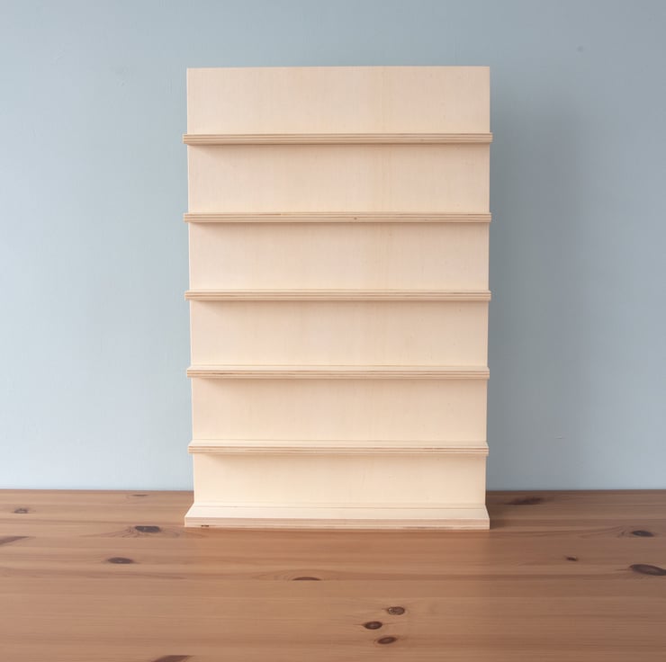 Plywood is very strong and durable, and is a much better quality wood than MDF. The elegant lines found on the edges of plywood are unique and provides a modern and stylish look. We make this stand from Poplar plywood, which is lighter than Baltic birch plywood, to make it easy to transport to markets and shows, whilst remaining strong and sturdy.