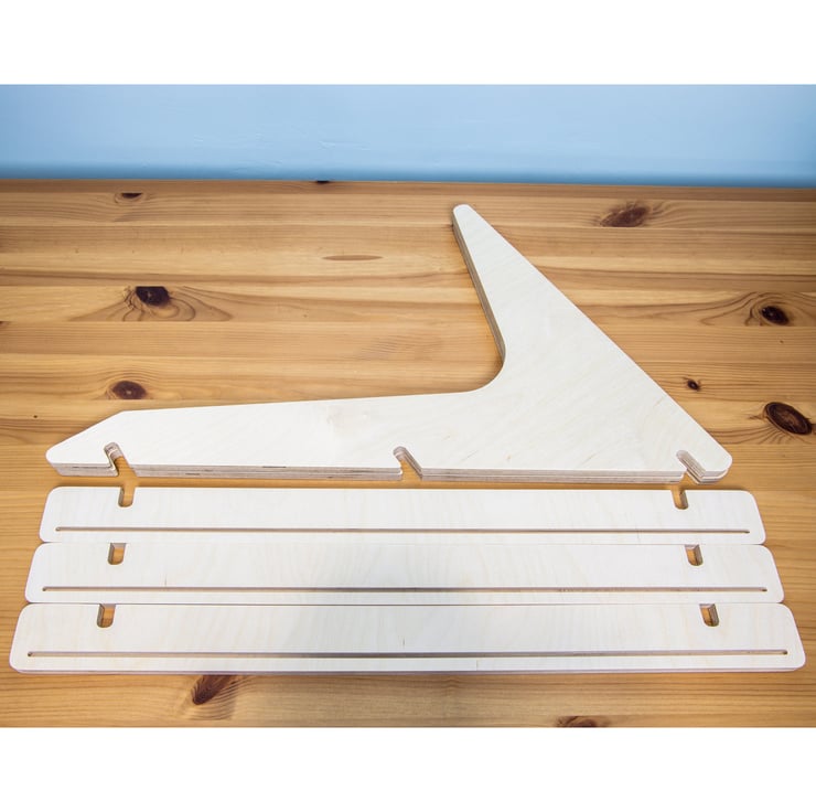 No glue or screws required to assemble. Assembly is very easy as all parts slot into each other and can be flat packed, which makes it easy to transport to craft fairs and markets.