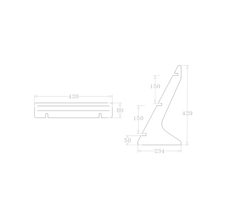 3 Shelves - 420mm x 80mm with grooves on one side (reversable)