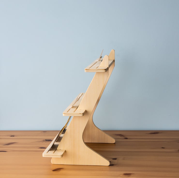 The elegant lines found on the edges of plywood are unique and provides a modern and stylish look. We make this stand from Poplar plywood, which is lighter than Baltic birch plywood, to make it easy to transport to markets and shows, whilst remaining strong and sturdy.