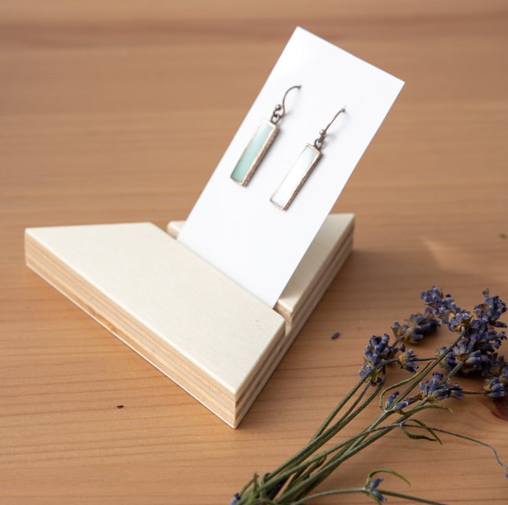 This triangle card and earring holder is lightweight and made from 12mm Poplar plywood. Perfect for weddings to showcase a table number, menu, or name placeholder. In addition they are versatile enough to be used for market stalls to display Jewellery items such as earrings. Other items to display are postcards, photos and business cards.