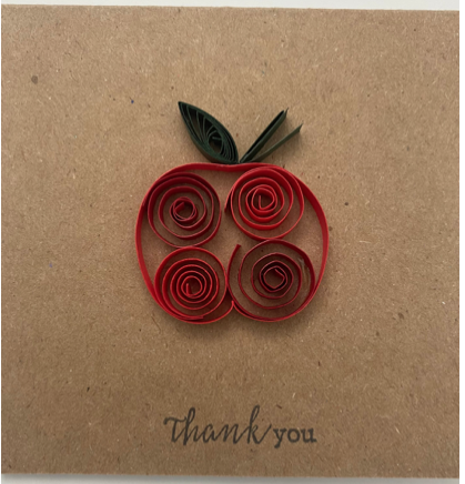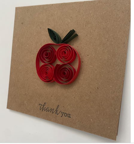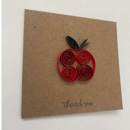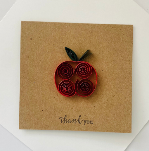 Each card is made using quilling strips to create the 3D effect Apple. Each has a Thankyou stamp on the front. Measures 10cm x 10cm