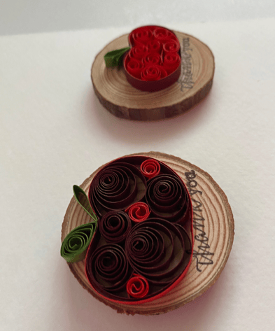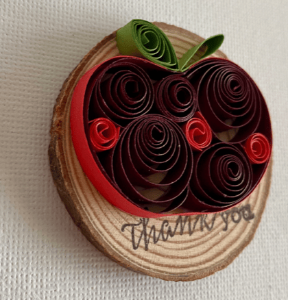 Paper Quilling Red Apple wood slice Thankyou magnet decorations.