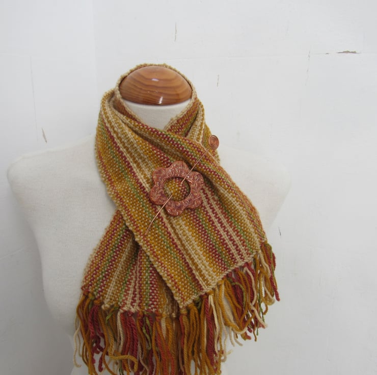 This short scarf can be tucked inside your collar, or fastened with a shawl pin or brooch.