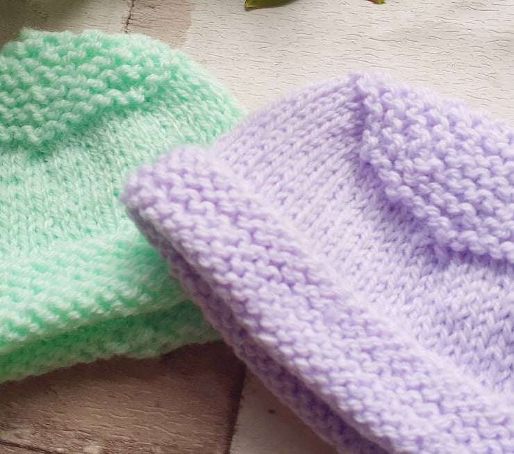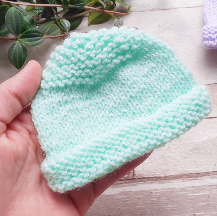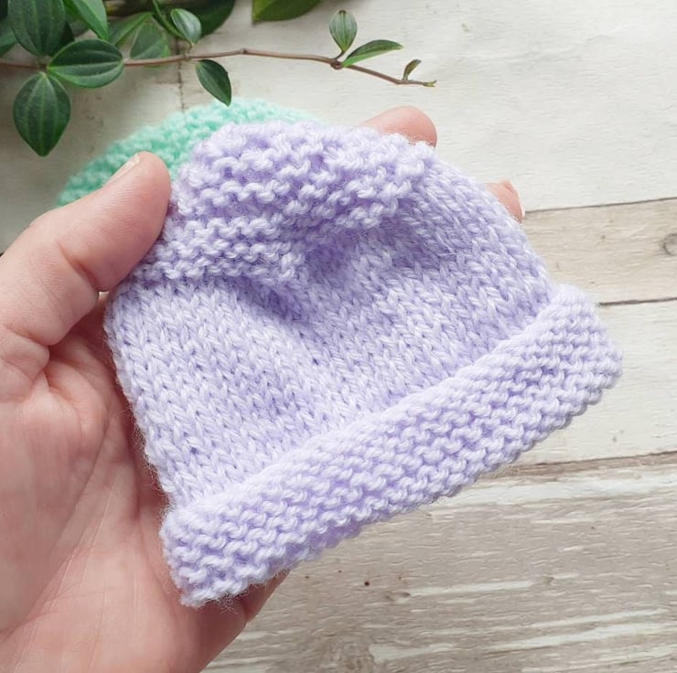 Soft and warm hand knitted baby hats that are machine washable.
