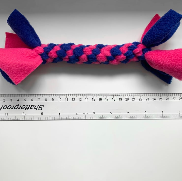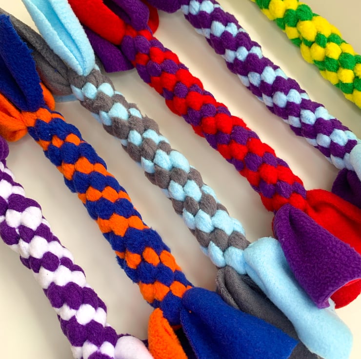 We only use the highest quality of fleece fabric, so that your dog can enjoy a toy that is strong, no mess and will last.