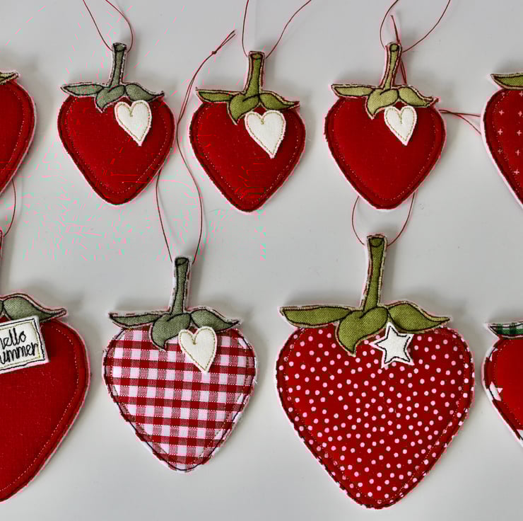 Delightful hanging decorations for a strawberry loving person.