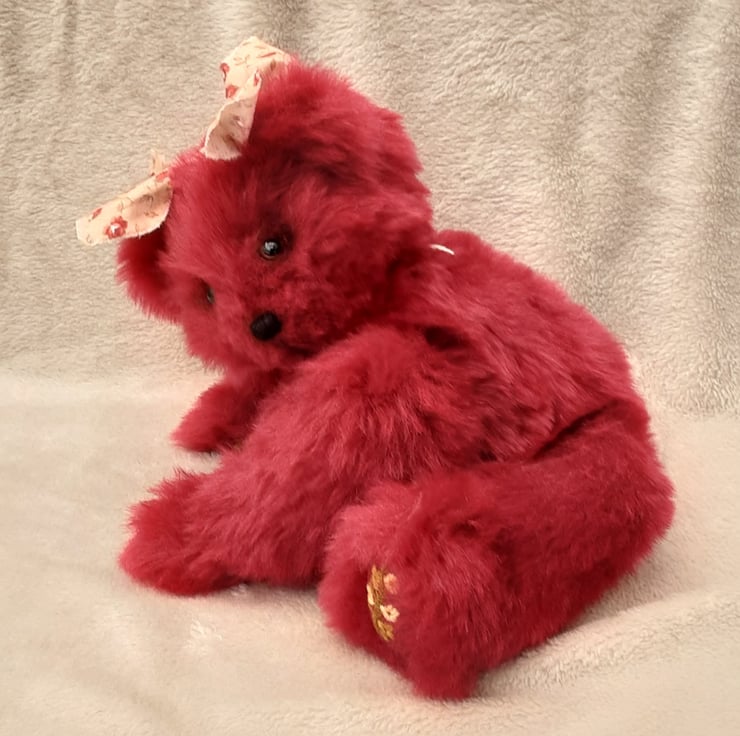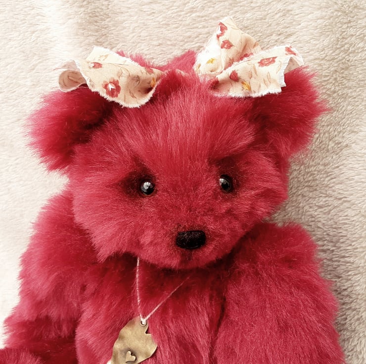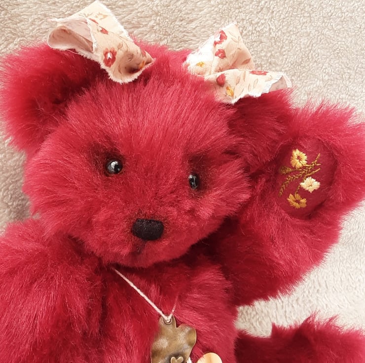 Meet Cranberry, a large keepsake bear, created from a lovely dense faux fur in deep red. A one off unique bear.