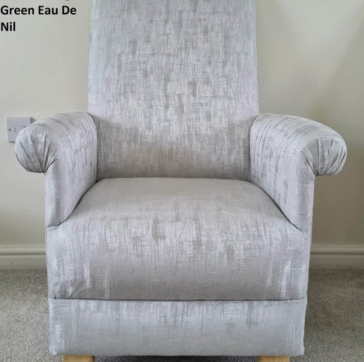 This is a handcrafted, sturdy adult sized armchair, which has been made by myself, a professional upholsterer with over 32 years experience, using Laura Ashley Whinfell Sage Green fabric.