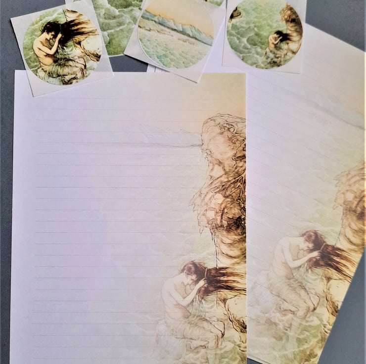 A set of 10 sheets of A5 size handmade letter writing / notepaper set based upon the wonderful illustration of Nymph on a Rock, by artist Warwick Goble.