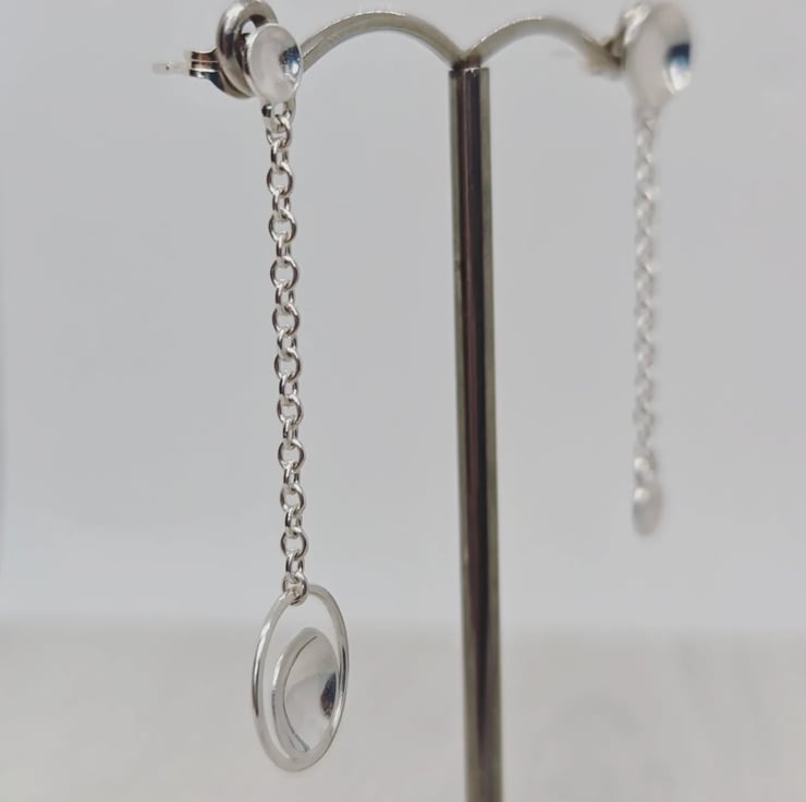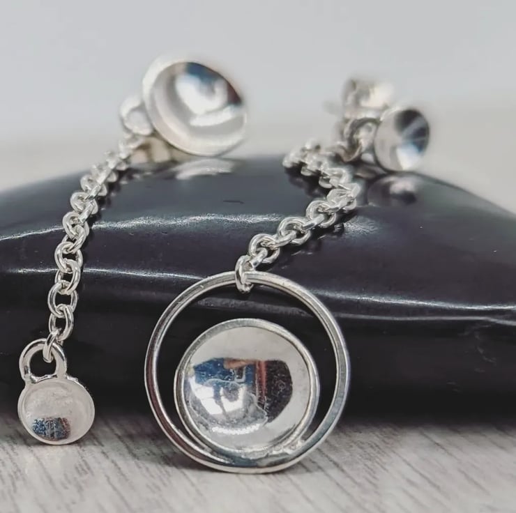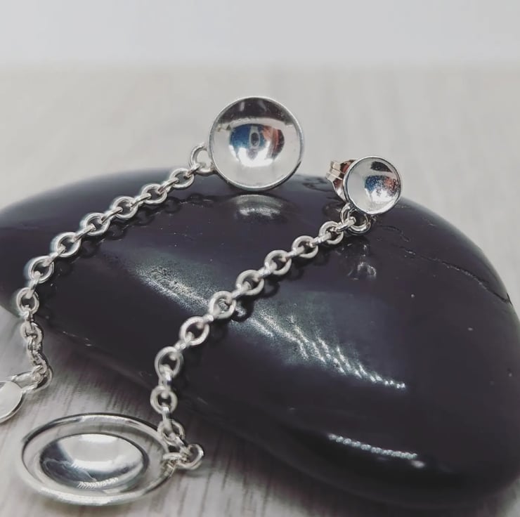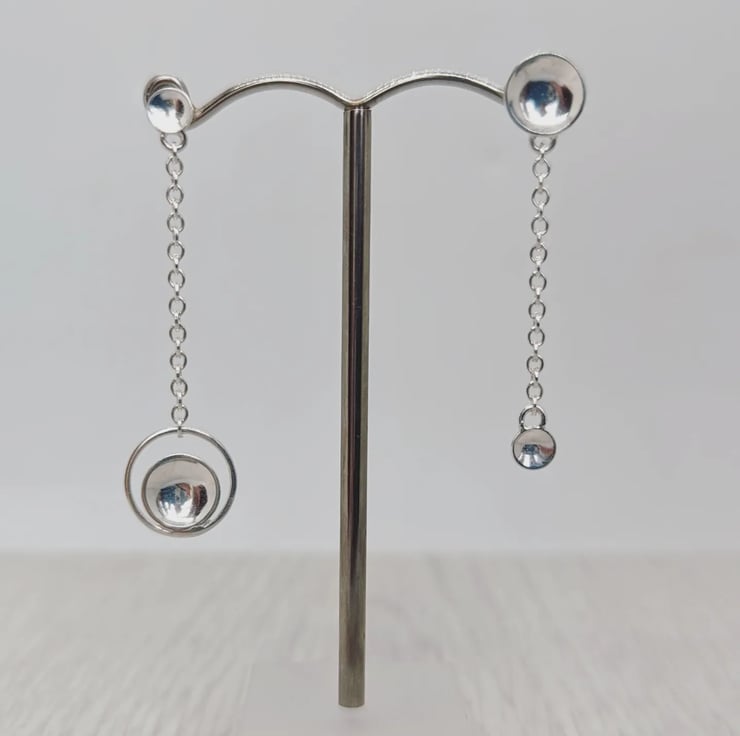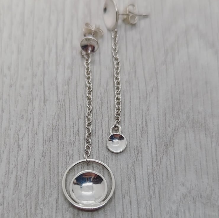 Domed Chain mismatched silver drop earrings