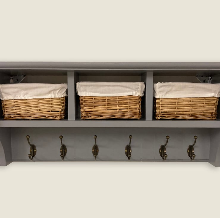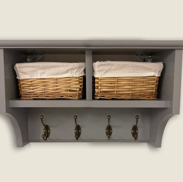 Natural wicker storage baskets above are perfect for gloves, keys or wallet etc.