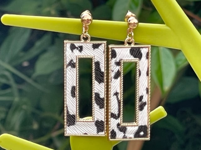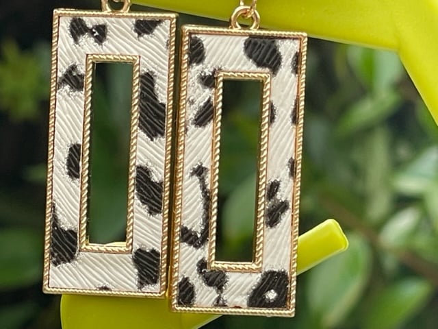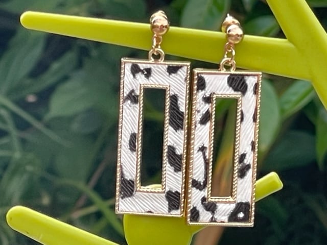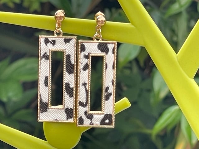 Super black and white animal print on fabric, gold plated brass disco groovy earrings.