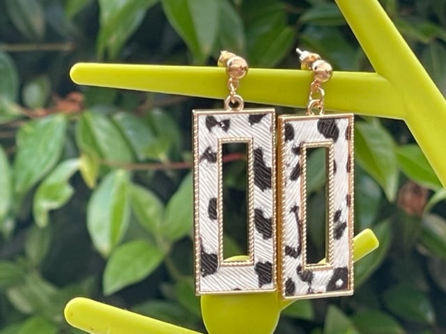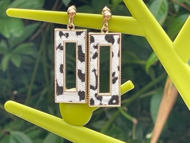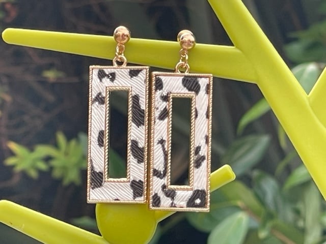 I"ve used a rectangular animal print on gold plated brass piece and paired it with a lovely round gold plated brass pushback post in the same colour of gold.