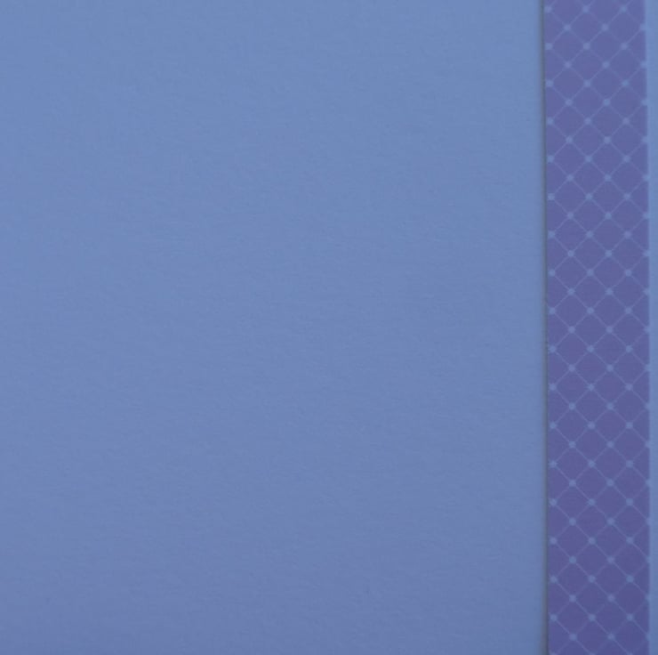 The inside of the card has a strip of the same lilac and white card down the right hand side.