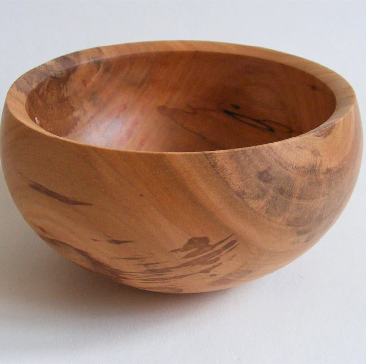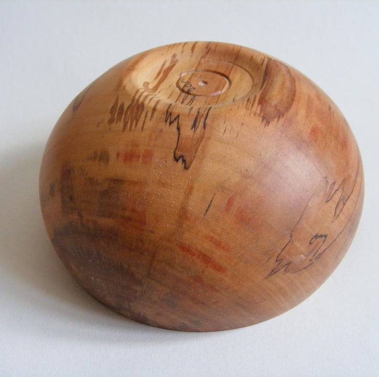 Spalted Cherry bowl 128 x 66 mm (12.8 x 6.6 cm) No.201 A lovely spalted Cherry bowl with a slightly closed form and a nice curving shape. It has lovely streaks and lines caused by natural processes in the wood which enhance Cherry's natural warmth.