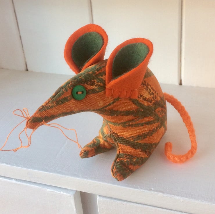 This mouse is stuffed with new 100% polyester filling which conform to BS5665, BS5852 and EN71 parts 1,2 & 3. The vintage fabric has been fully interfaced for additional durability.