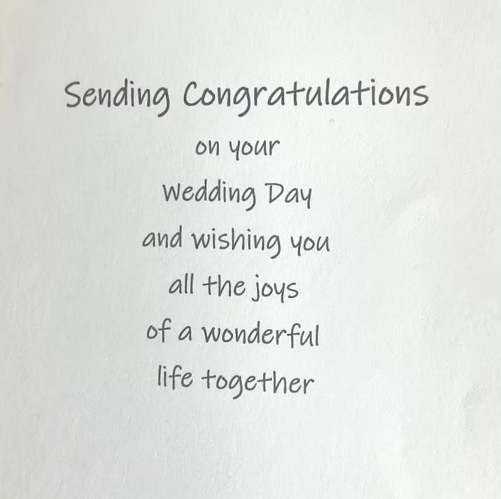‘Sending Congratulations on your Wedding Day and wishing you all the joys of a wonderful life together’