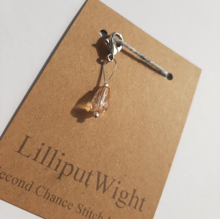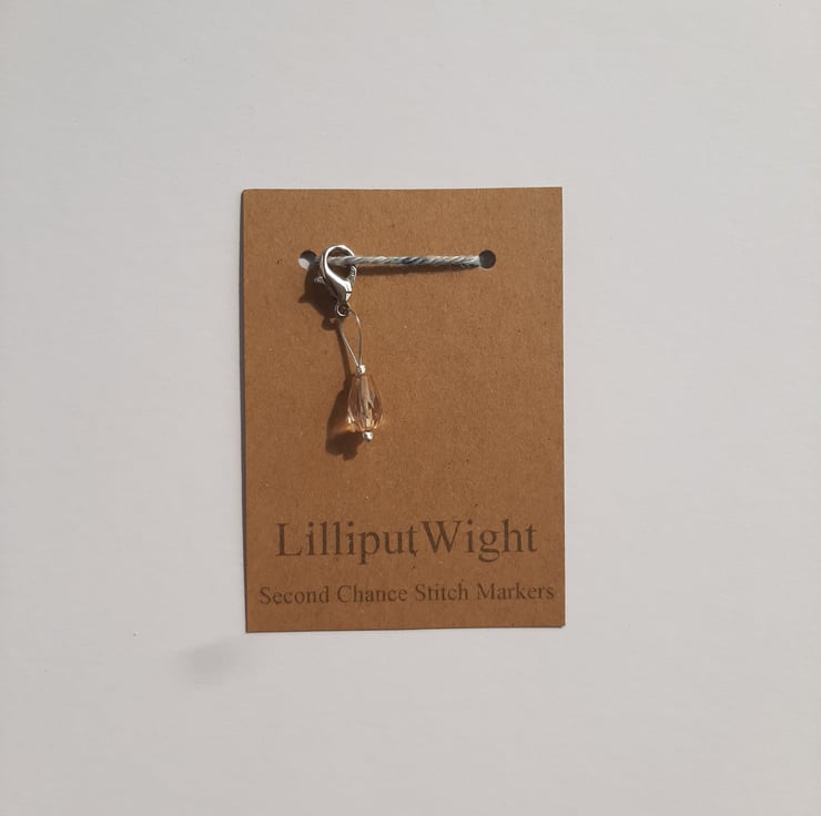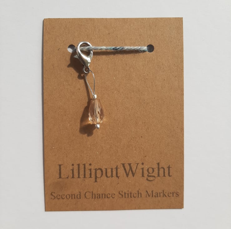 Inspired by a broken earring this range of stitch markers is made from the broken and unloved jewellery found in charity shops. They are broken apart, cleaned and dried before being turned into stitch markers and given a second chance of life.