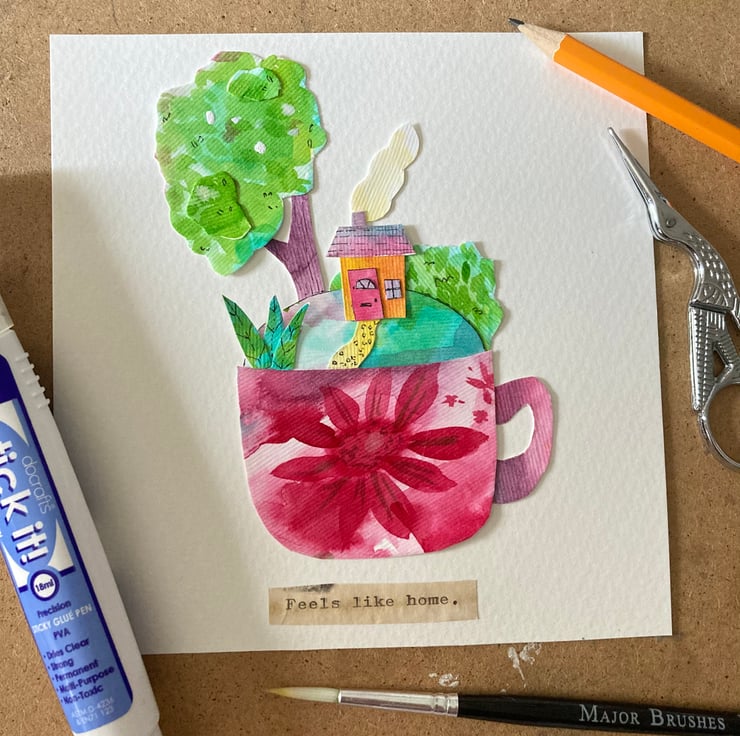 I love to create artwork in many different mediums and this kind of artwork gives me the chance to paint, draw and collage. I also just really love tea!!