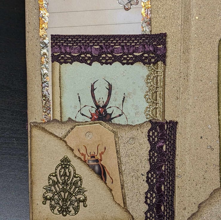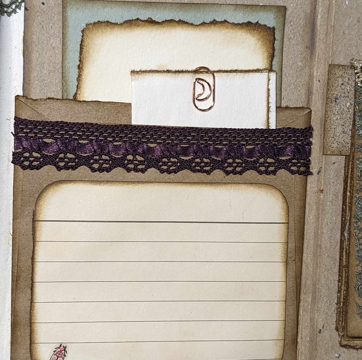 There are roughly 36 pages inside this single signature book with several different paper types. (72 front and back) Loads of writing space. The pages are not embellished at all besides the inked edges and tea staining.