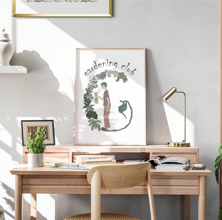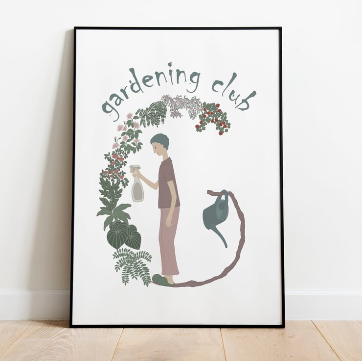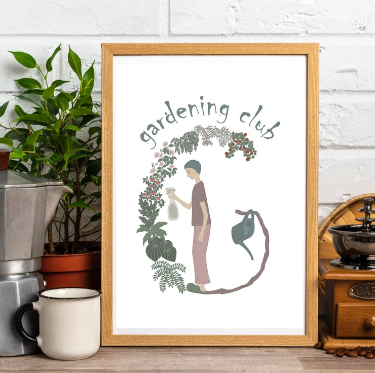 This piece of artwork, featuring a gardener encapsulated in the letter 'G', is crafted by me in my home studio.