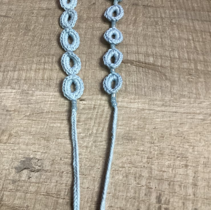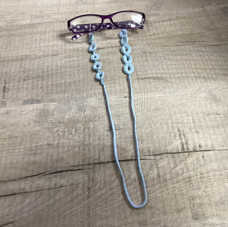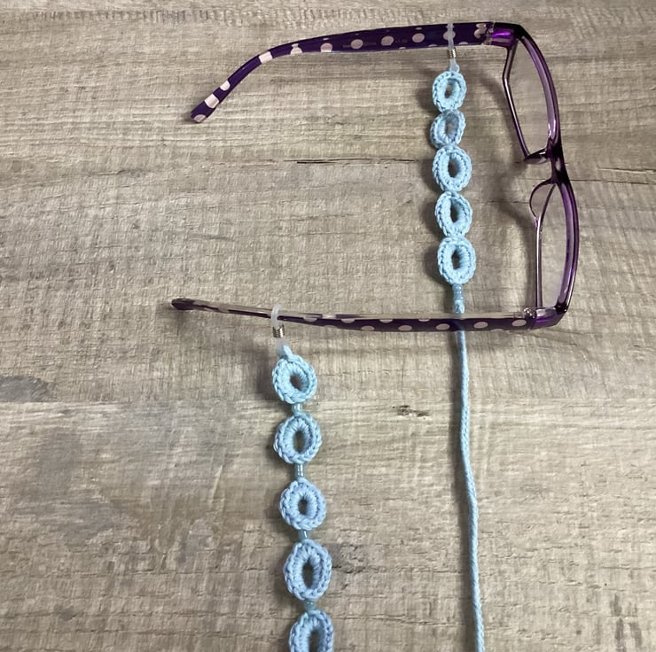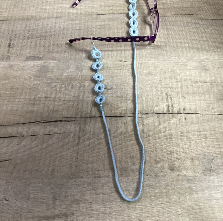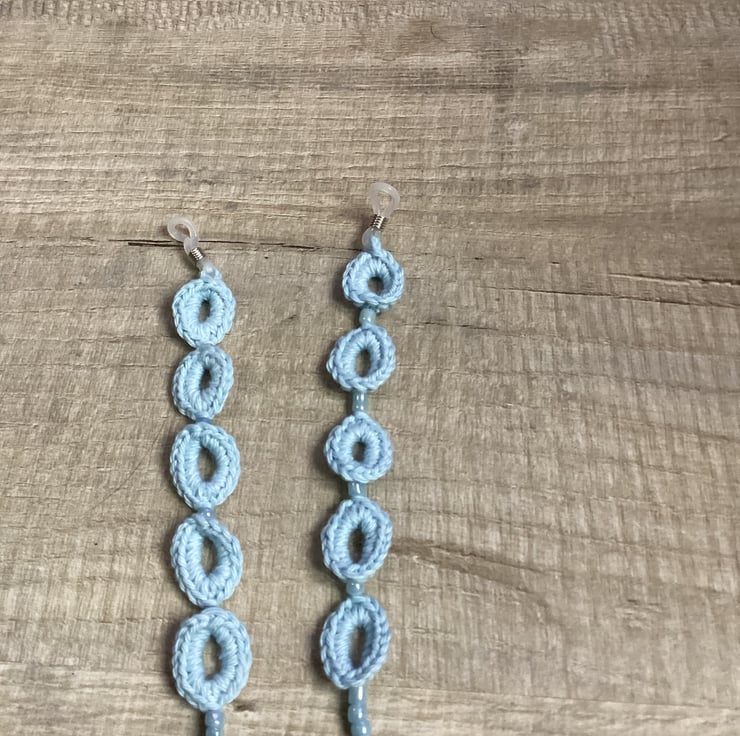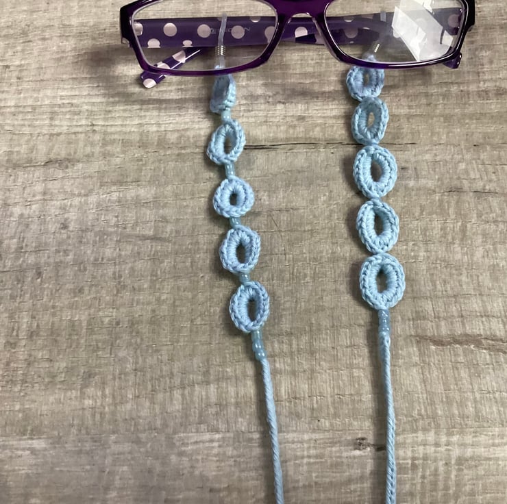 Stunning, easy to use and more important very useful . If you’re like me constantly losing your reading glasses this chain is perfect for you! I’ve made several for my self and using it all the time! I’ve used cotton yarn and 20 mm White Rubber Connectors . Embellished with beads.