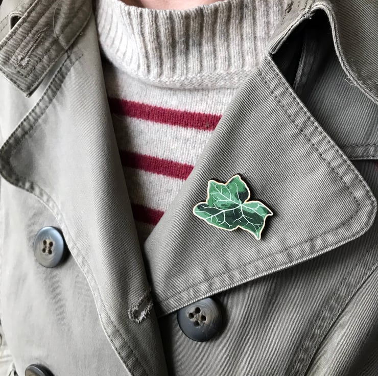 My new 'Ivy League' collection celebrates the wonderful ivy plant and the incredible wildlife it attracts! This laser cut ivy leaf wooden pin is the perfect fun and bold addition to any nature lovers lapel.