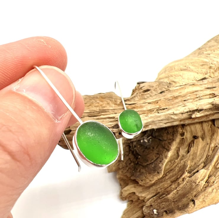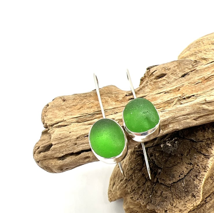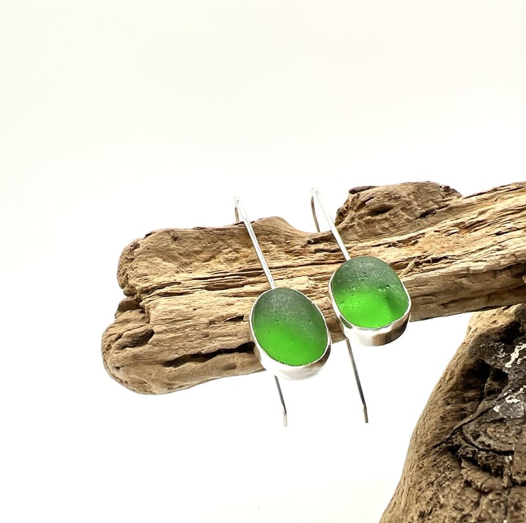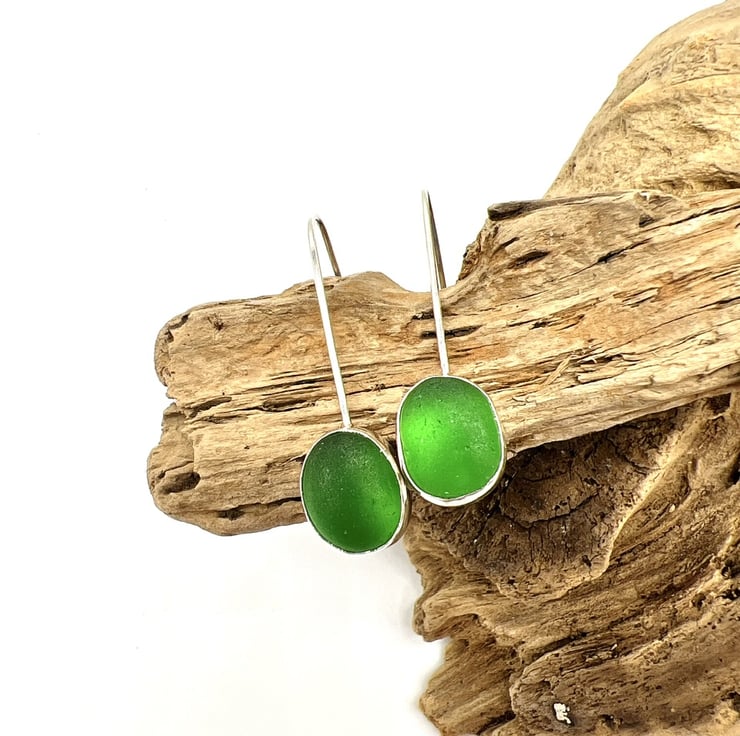 These beautiful pieces of bottle green sea glass were found on my nearby beach and I’ve them turned them into these gorgeous earrings in my workshop on the Isle of Wight.