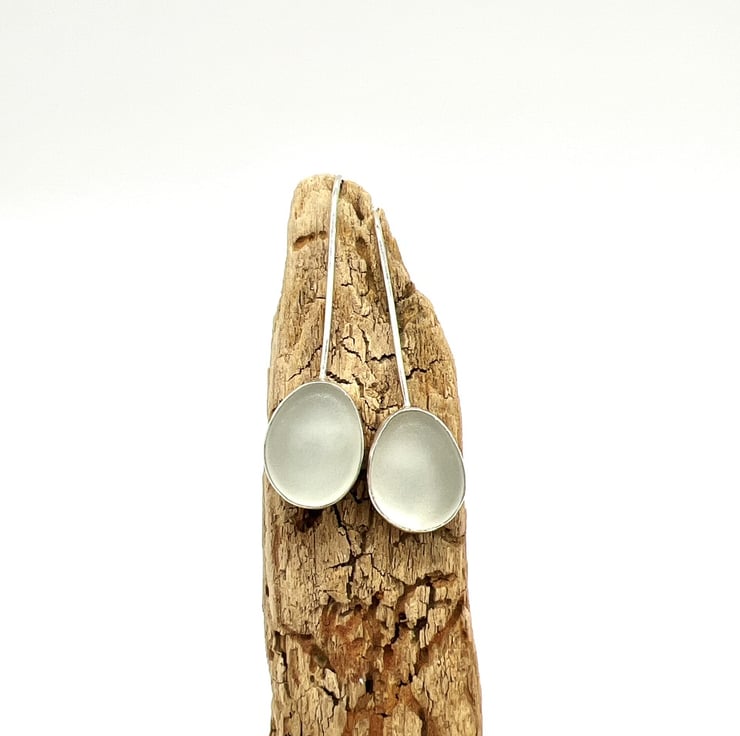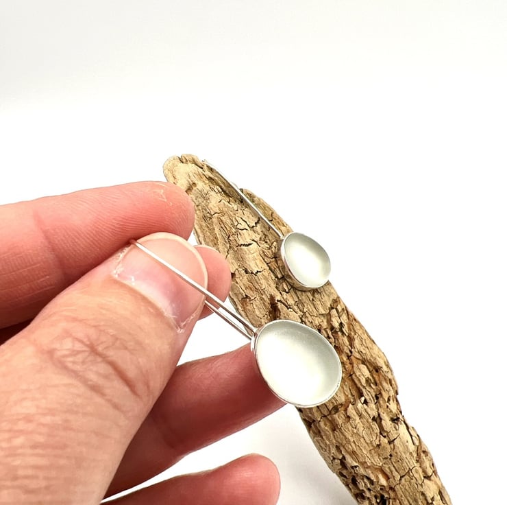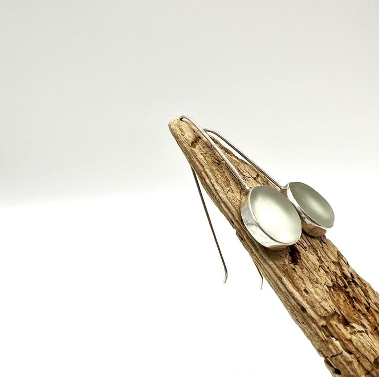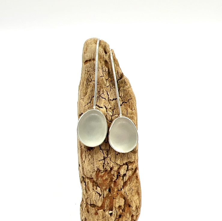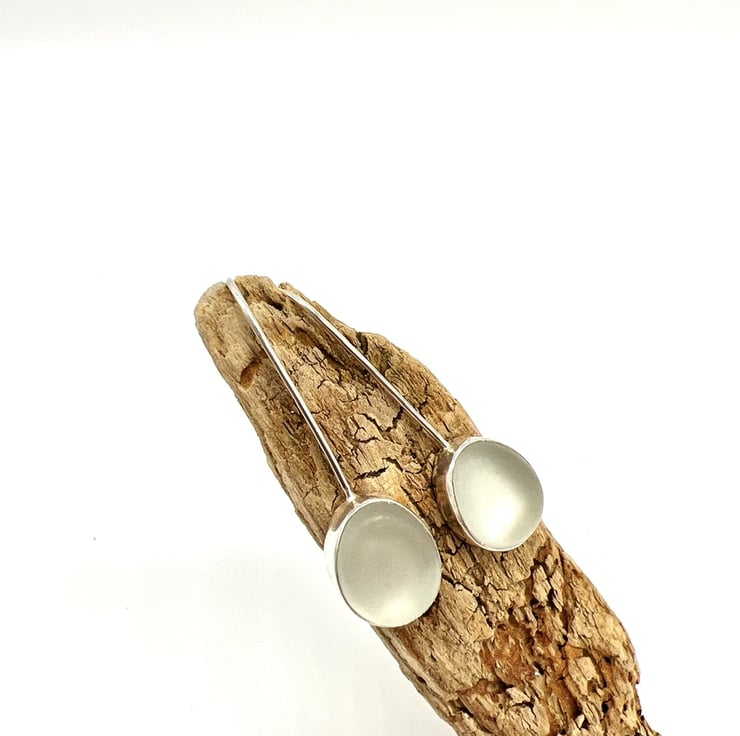 These beautiful pieces of white sea glass were found on my nearby beach and I’ve them turned them into these gorgeous earrings in my workshop on the Isle of Wight.