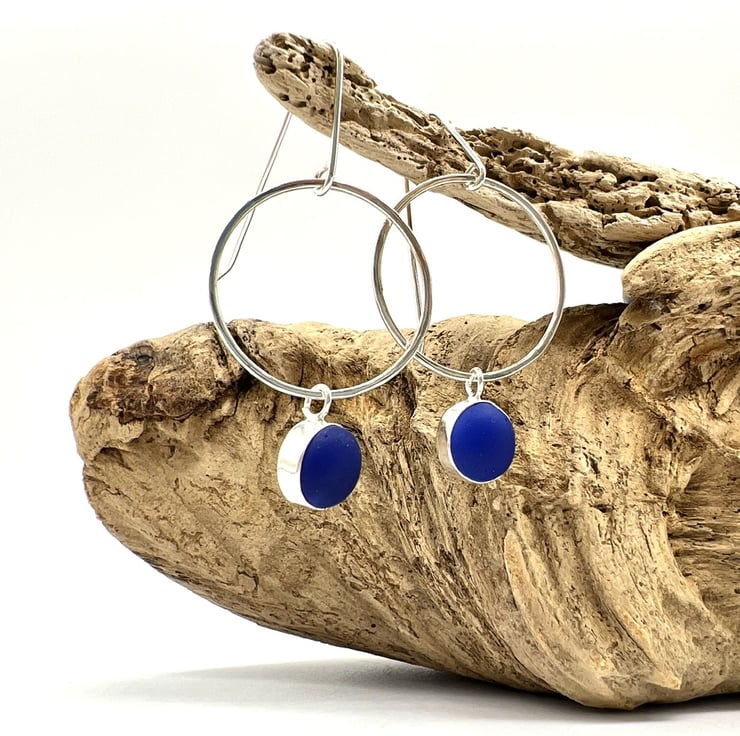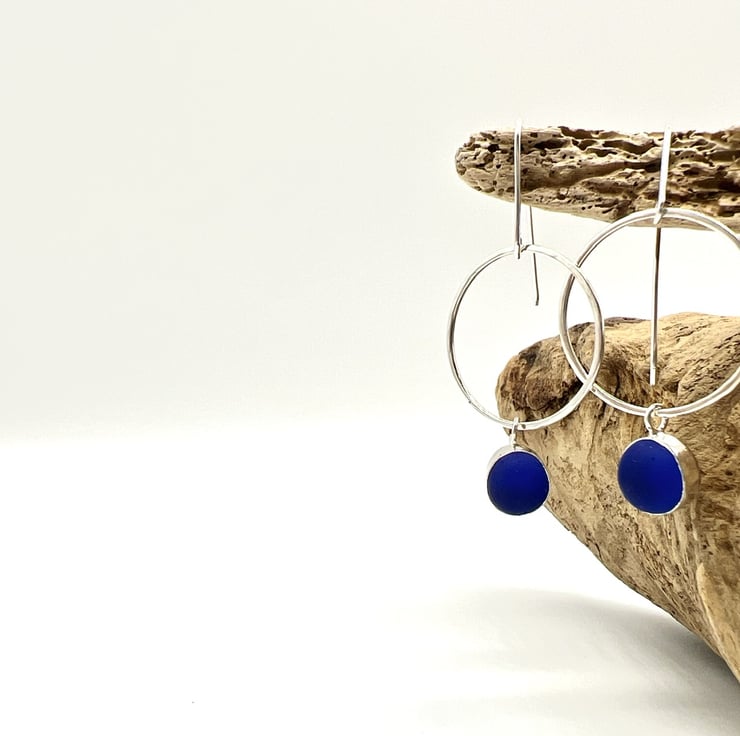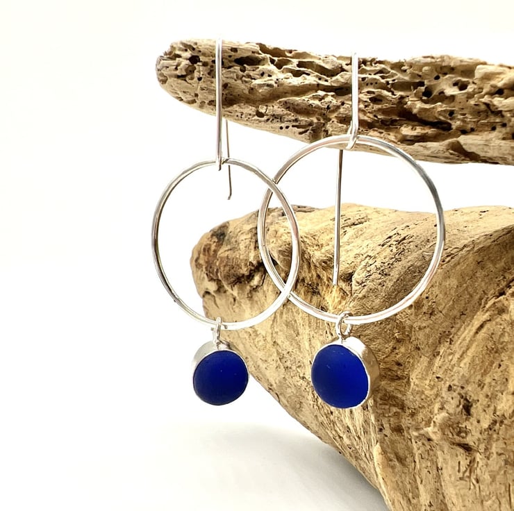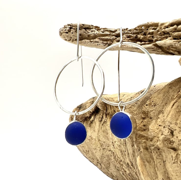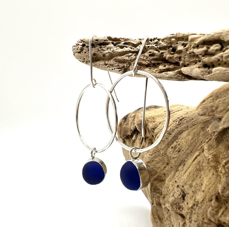 I have set the pieces of sea glass in a handmade sterling silver setting. They have been hung on a hoop and handmade ear hooks.
