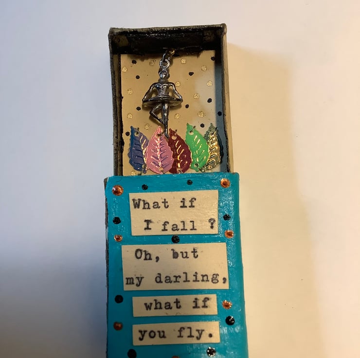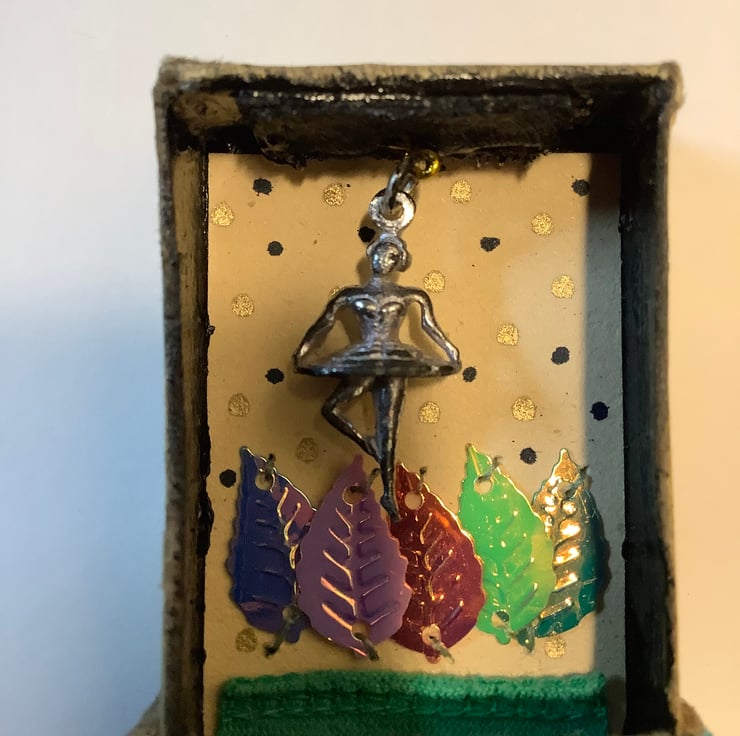 This is a tiny vintage matchbox. Inside is a mini vintage ballerina charm.