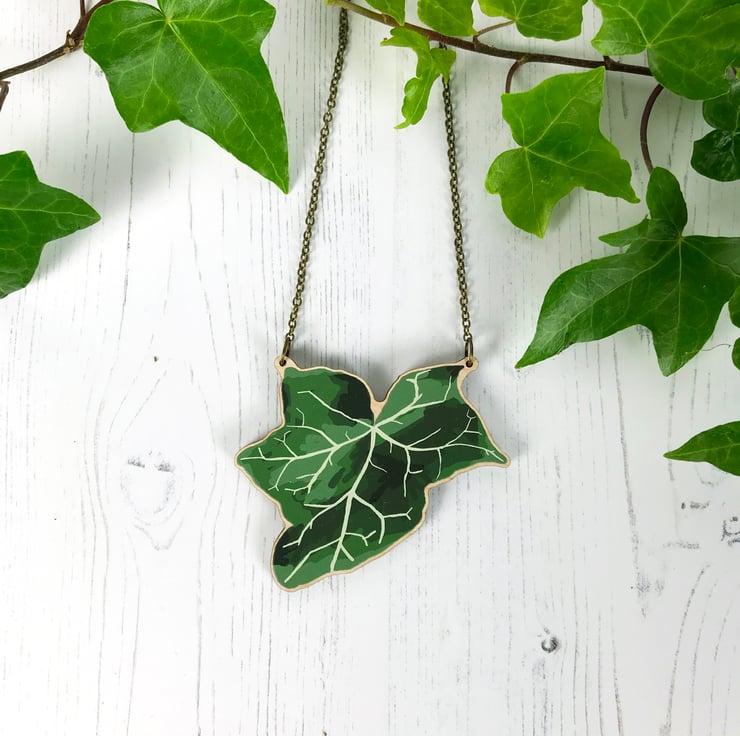 This large and lush dark green leaf makes a bold statement necklace, perfect for plant lovers and fellow ivy fans. Sold in aid of Bug Life, 10% from each item of the Ivy League collection sold will be donated to Bug Life, a registered charity in England and Wales, number 1092293, and in Scotland, number SC040004.
