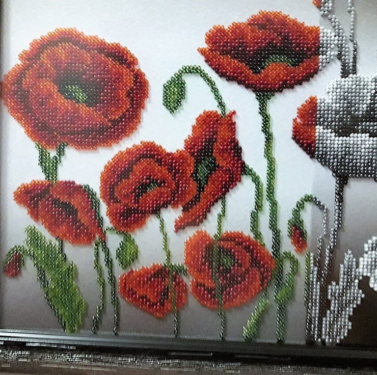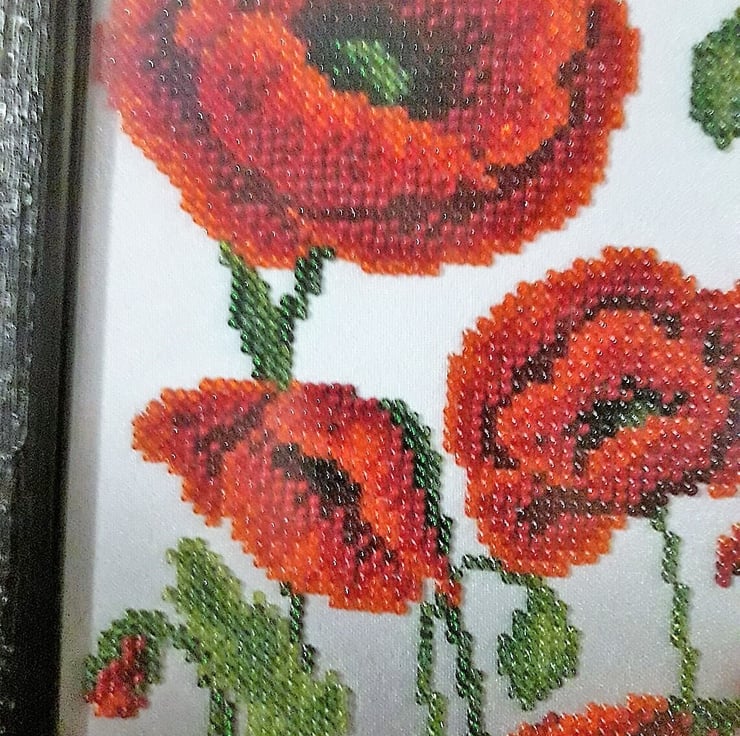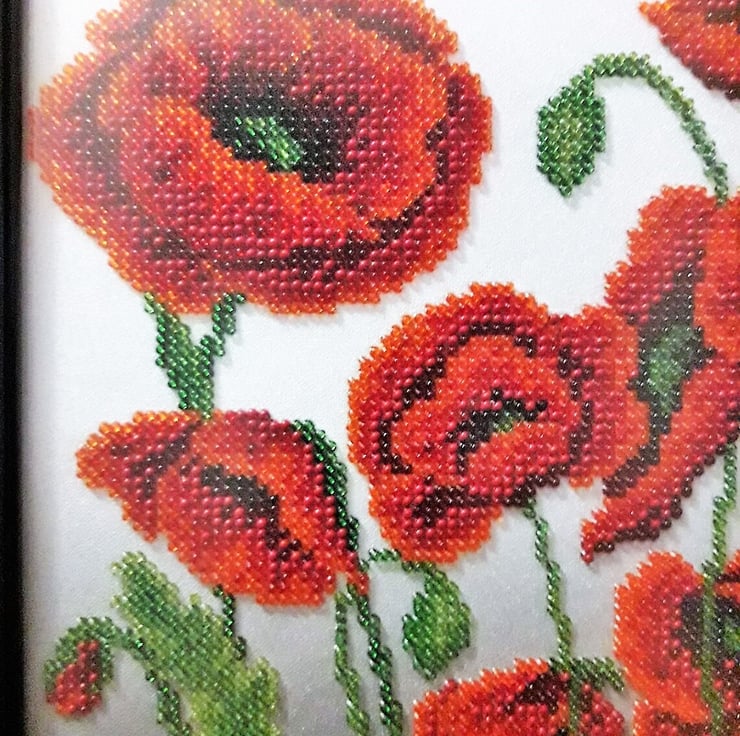 This is a 100% handmade item and there is just 1 painting in stock. Only quality materials have been used to make this absolutely stunning embroidered painting,such as: Czech beads,wooden frame and anti-reflective glass.It's a great gift for you or your loved ones and it will look good in any room of your house.