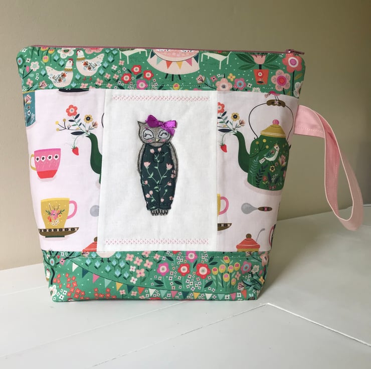 I have made this project bag out of beautiful tea themed cotton and stitched together with some lovely linen.