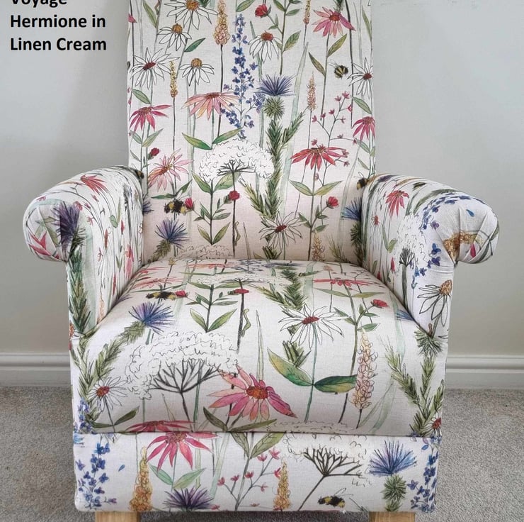 This is a handcrafted, sturdy adult sized armchair, which has been made by myself, a professional upholsterer with over 32 years experience, using Voyage Hermione Linen fabric.