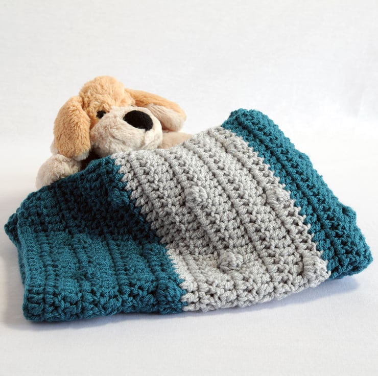 I made this using two strands of yarn at once to create a soft luxurious and cuddly blanket