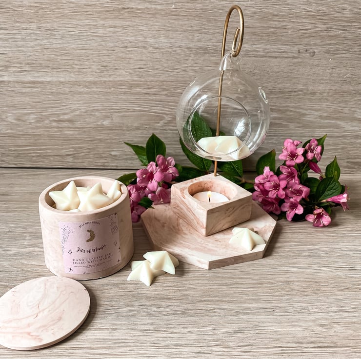 Wax melts are incredible for filling your home with fragrance but they dont need to be boring to look at and with this set you get a matching jar of magic as well, one of our hand crafted eco-friendly jars filled with luxury wax melts. A perfect gift or treat to yourself or a loved one!