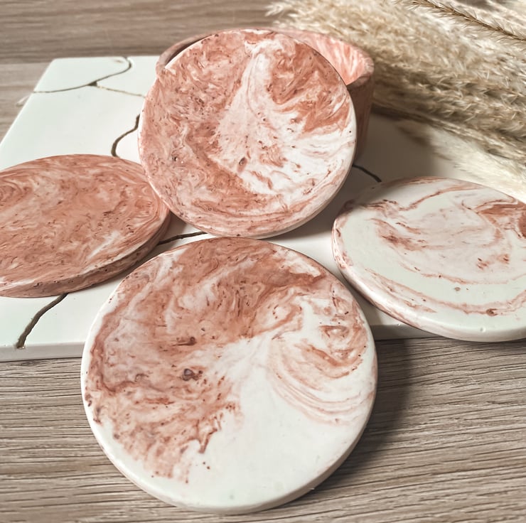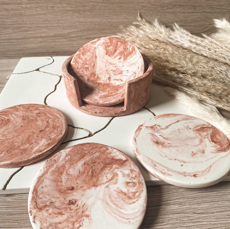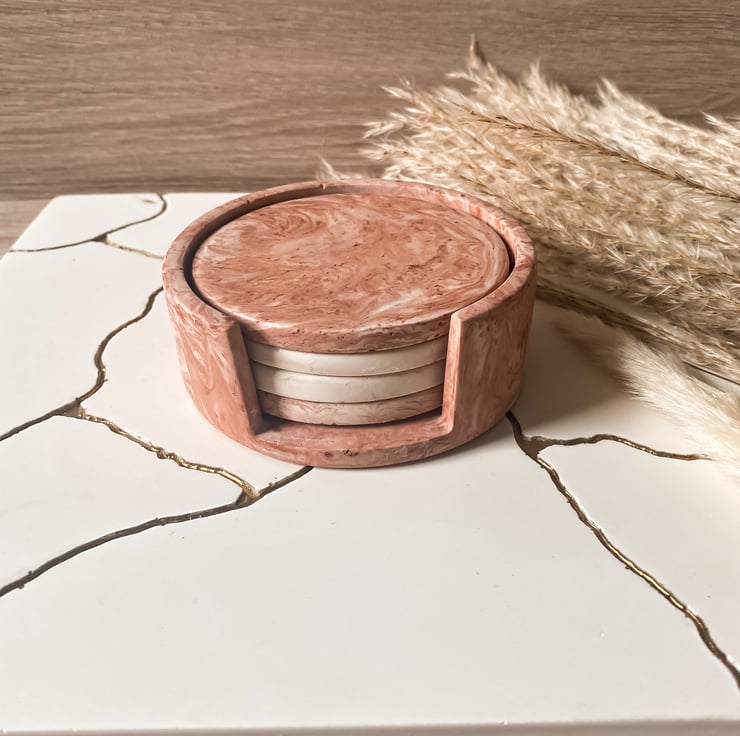 These gorgeous coasters would look beautiful in anyones home. They come in our popular marbel quartz colourway which is a mix of soft pinks, creams and golds.