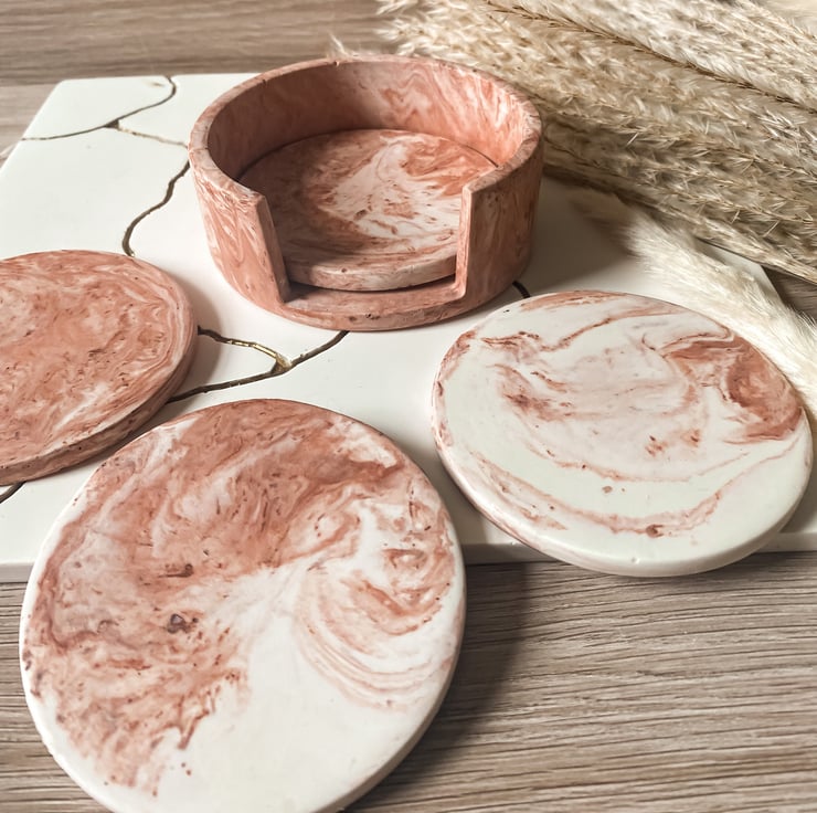 We hand-make our coasters out of Jesmonite which is a solvent free and eco-friendly material with no VOCs. Made in the UK with local supplies, our products are vegan and cruelty-free.