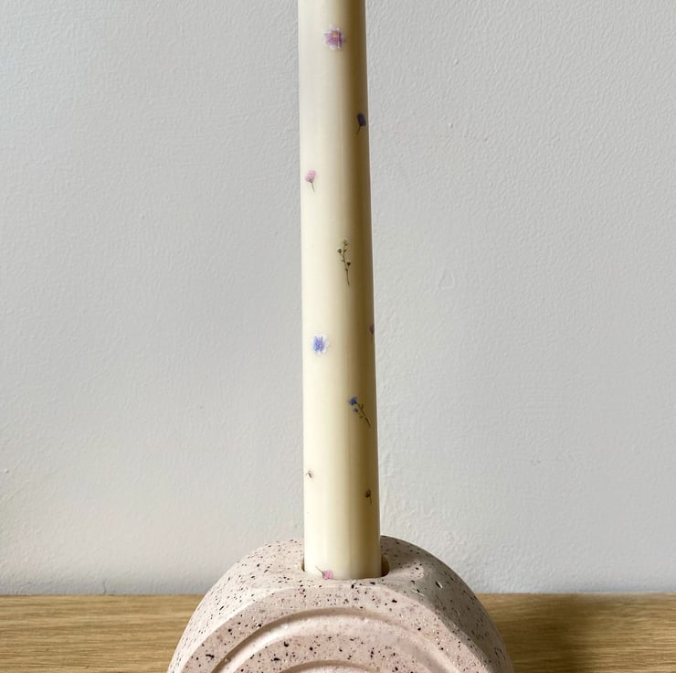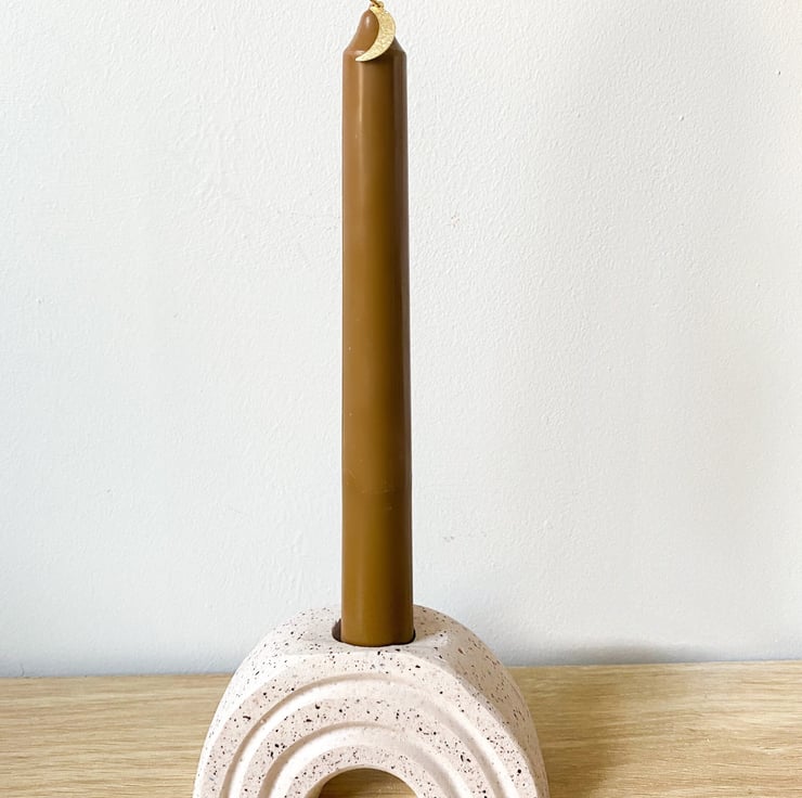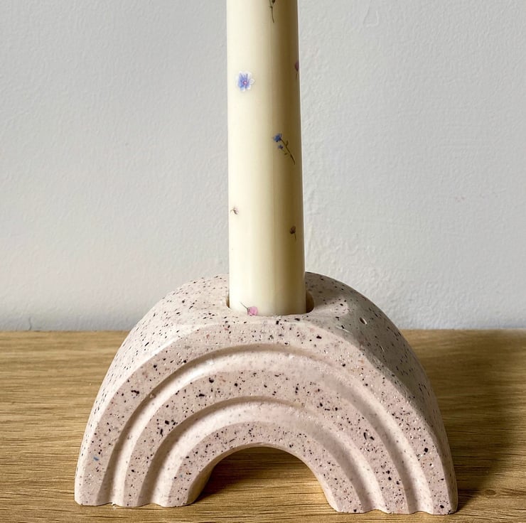 This beautiful rainbow candle holder elevates any space with its cheery form and subtle Terrazzo speckles.