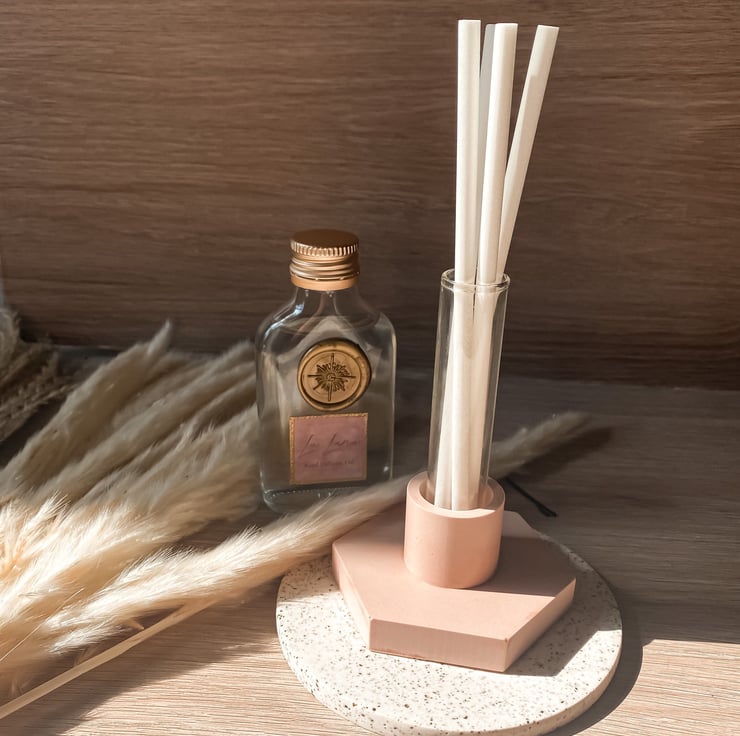 First choose your diffuser style, then choose one of our signature fragrance blends. Fill your tube up to around 34 full and pop your diffuser sticks in. Place in a desired area such as next to your computer, yoga mat or by your bed and let the diffuser slowly release the fragrance into the air. Perfect for bathrooms and entryways.
