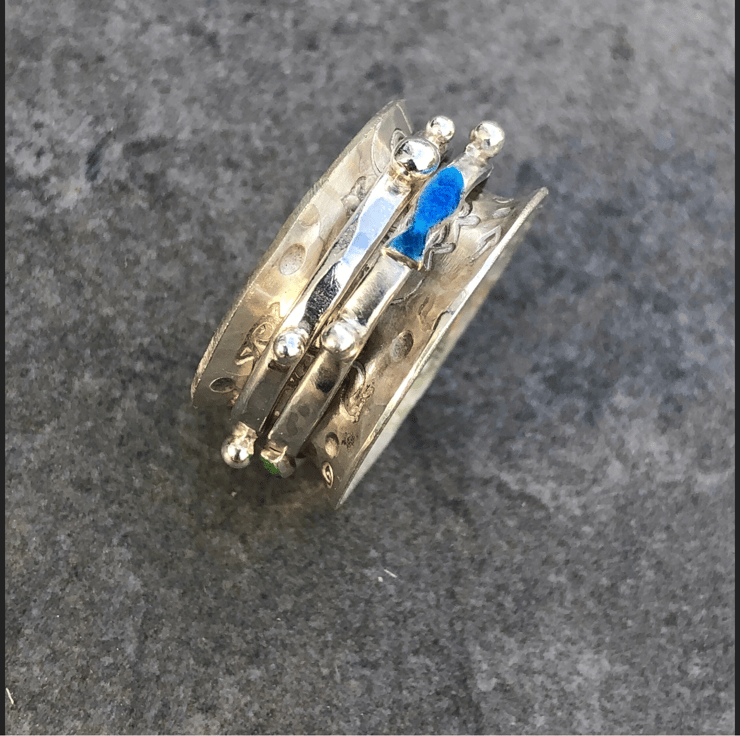 Fish Spinner Ring, Enamel Ring, silver spinner ring, fish ring, enamel jewellery
